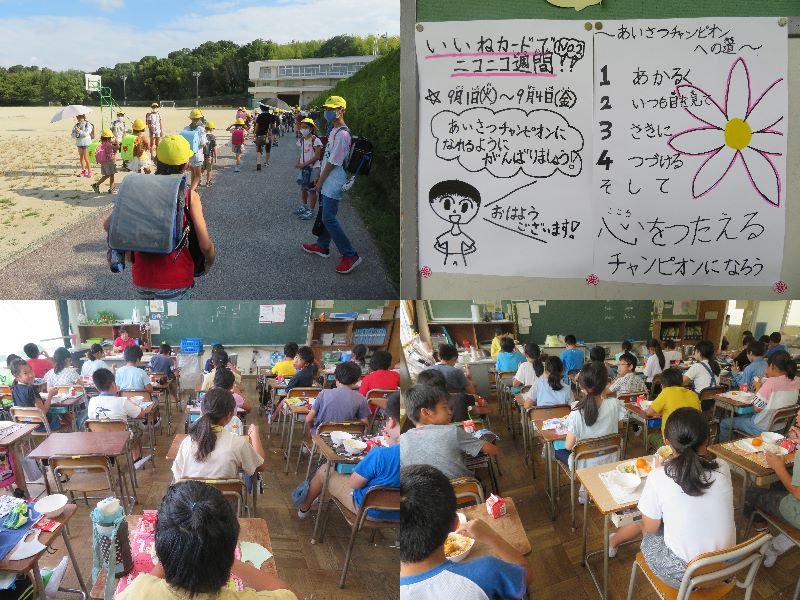 また、今日から給食が始まりました。献立は大人気のカレーライスでしたが、1学期同様、前方を向いたままの席で速やかに食べていました。おしゃべりができないので、その分、カレーライスの美味を堪能しているようでした。やっぱり日進市の給食センターが作るカレーは最高ですね。