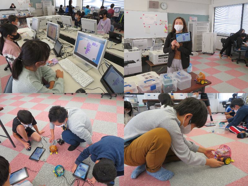 自分で考えた通りに動く自動車ロボットを見て、子どもたちはびっくりしていました。これからも、「総合的な学習の時間」にプログラミング学習を積極的に取り入れていきたいと考えています。