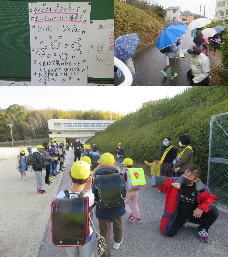 「笑顔であいさつ!心かよわす南っ子!!」を実現すべく、児童会役員と総務委員が中心となって実施してきた挨拶強化週間(「あいさつにこにこ週間」)も今週で今年度最後となりました。ここまで月ごとにテーマを変え、いろいろなアイデアで挨拶を盛り上げてきました。今回は「チャンピオンフラワーであいさつにこにこ週間!」と銘打ち、