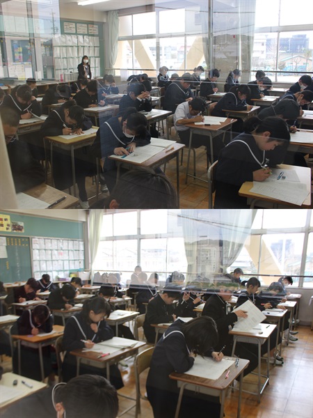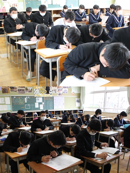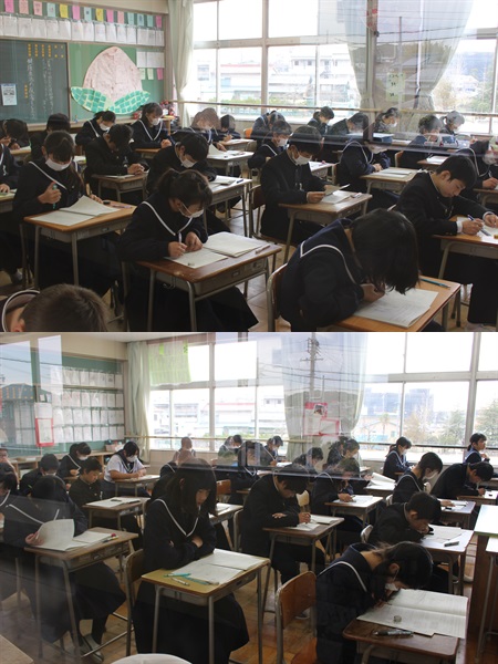 本日、「1・2年生は学年末テスト」です。