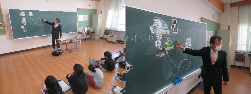 子どもたちは40分間全集中の状態で、うなずいたりメモをとったりしながら真剣に話を聞いていました。講義後の質問コーナーでも多くの手が挙がり、3年生の歴史への関心の高さにびっくりしました。大河ドラマ「麒麟がくる」や漫画「鬼滅の刃」の影響があるかもしれませんね。