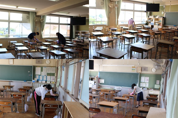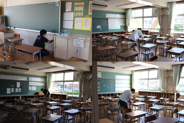 学校が再開し、月曜日は「教職員の消毒作業日」です。
