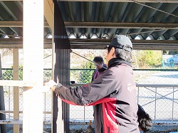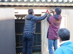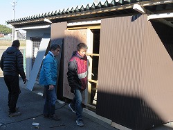 年越しを迎えるため、年末の大変お忙しい時期に前回小屋づくりに関わってくださった方が完成のためにお集まりいただけました。オヤジの会会長の大山さんをはじめ大森さん、香川さん、曾我さん、是永さんの5名と本校職員3名が仕上げを行いました。