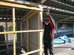 どの方も一つ一つの仕事が丁寧かつ頑丈に作られていき、小屋が完成しました。ものが置けるスペースが少ない日進中学校にとってはとてもありがたいスペースになりました。
