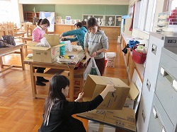 厚生委員会のみなさんが4階にある美術室でテトラパックの整頓および郵送の準備、インクカートリッジの仕分け(メーカー別)、ベルマークの仕分けなどを行いました。多くの皆様の協力のおかげで、送付する準備がたくさんできました。委員の皆様の手際よい作業に感謝しております。今年度も残り少なくなってきましたが、回収は随時行っていますので、ご協力いただけると幸いです。たくさんの資源(?)、お待ちしています!