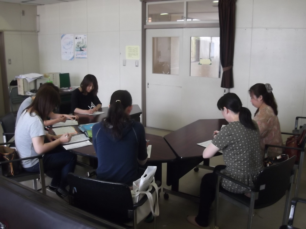 お茶の準備は? テーブルクロスは? 箸置きは?など、参加者へのおもてなしについても相談されていました。会場となる集会室の下見も行い、準備万端です。当日が楽しみです♡。