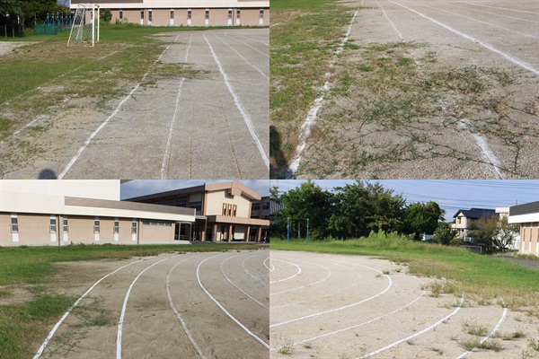 毎年、夏休みの間に「じわりじわり」と雑草が運動場の中心に向けて進出してきます。