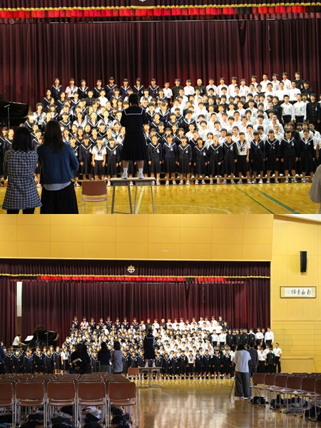 1年生は「初めて」各学級の合唱を「45秒間」だけ聴きました。