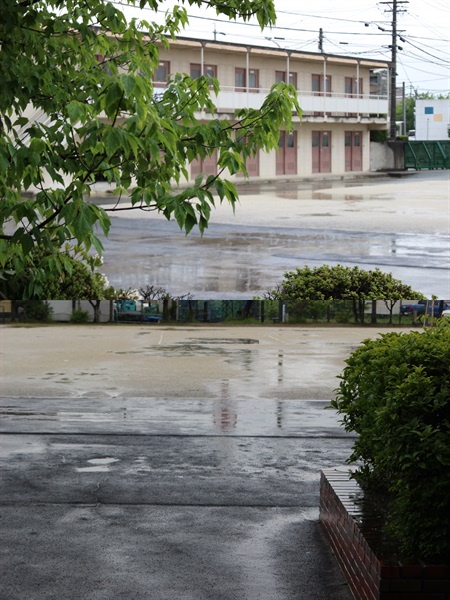5月とはいえ、雷が鳴り急激な天気の変容で「どしゃ降り雨」が降る。
