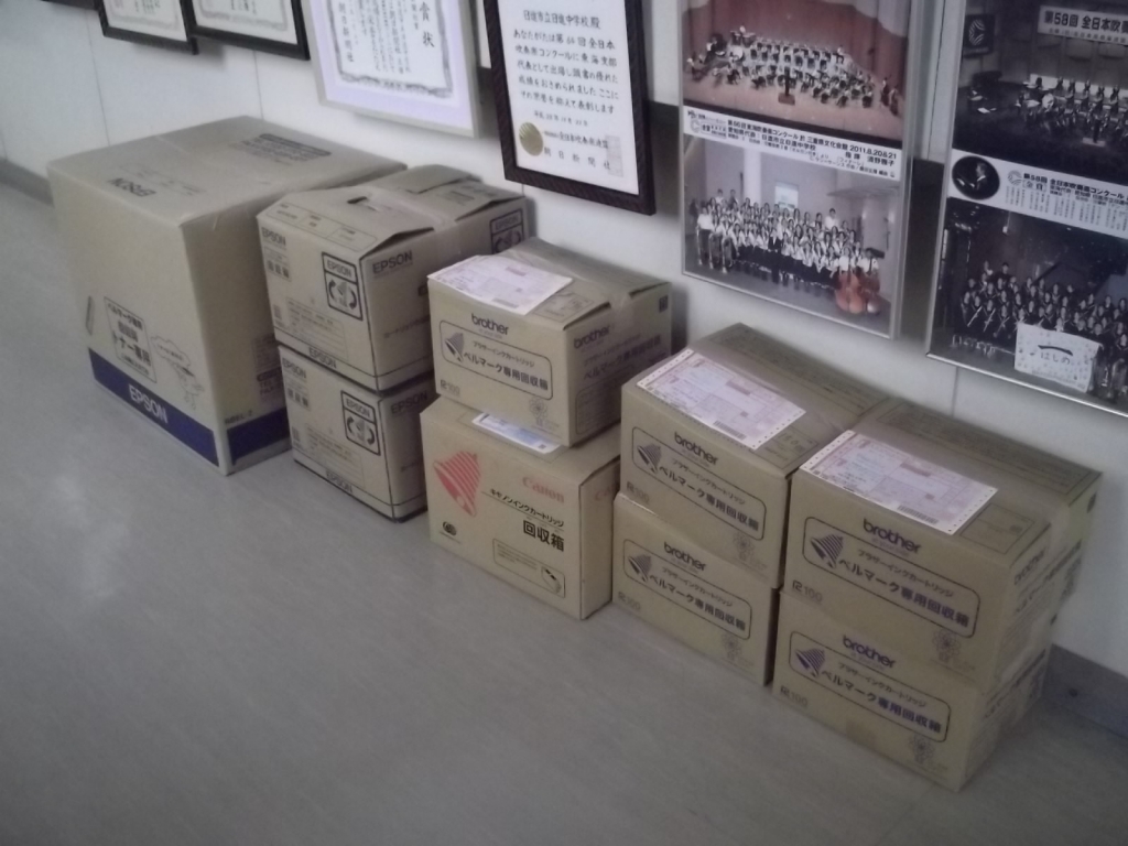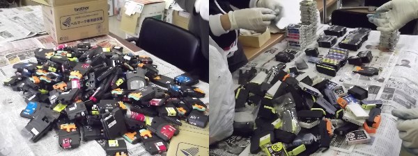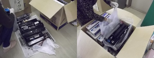 インクカートリッジの仕分けと箱詰め作業を行いました。