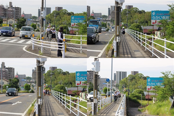徒歩通学者が多くなり、自転車通学者が県道を通り「小学生の分団」と重なる部分が、