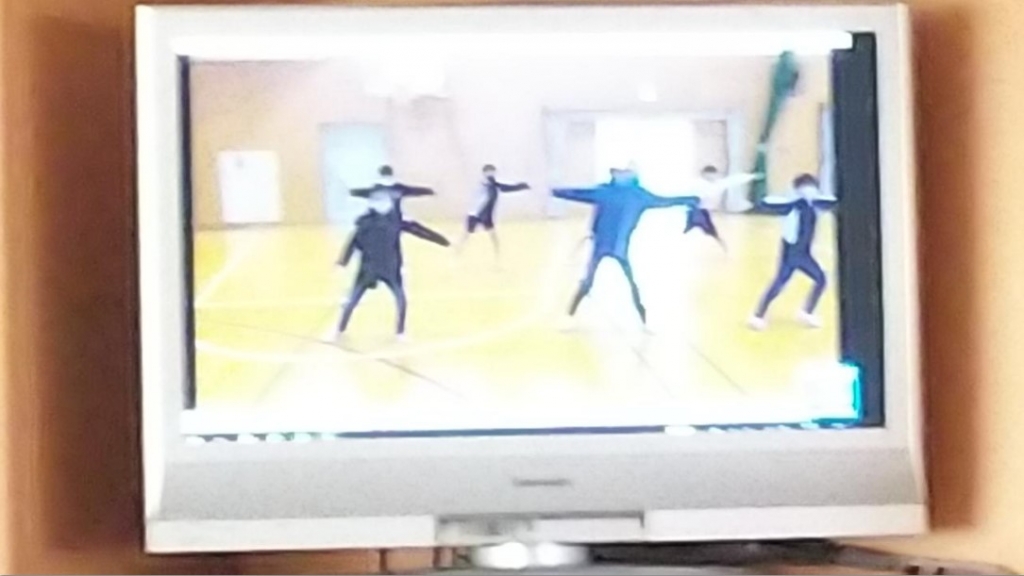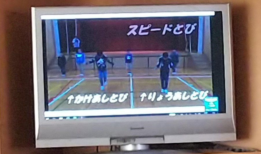 動画の内容としては、①体力づくりの流れの説明、②にっしん体操、③体育委員会メンバーによる取り組む縄跳びの説明、④縄跳び名人によるデモンストレーションとなっていました。④の縄跳び名人の場面では、初めて見る1年生から「すげー」「かっこいい」といった歓声があがっていました。
