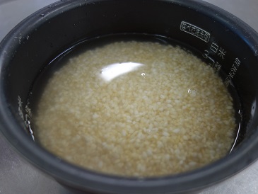 水を炊飯器の線にぴったり合わせて、スイッチオン。ここまでが1時間目です。