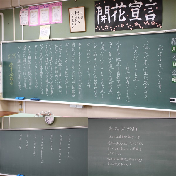 3年生は、「人生」「進路」?に関わる考えさせられるメッセージが・・・・。
