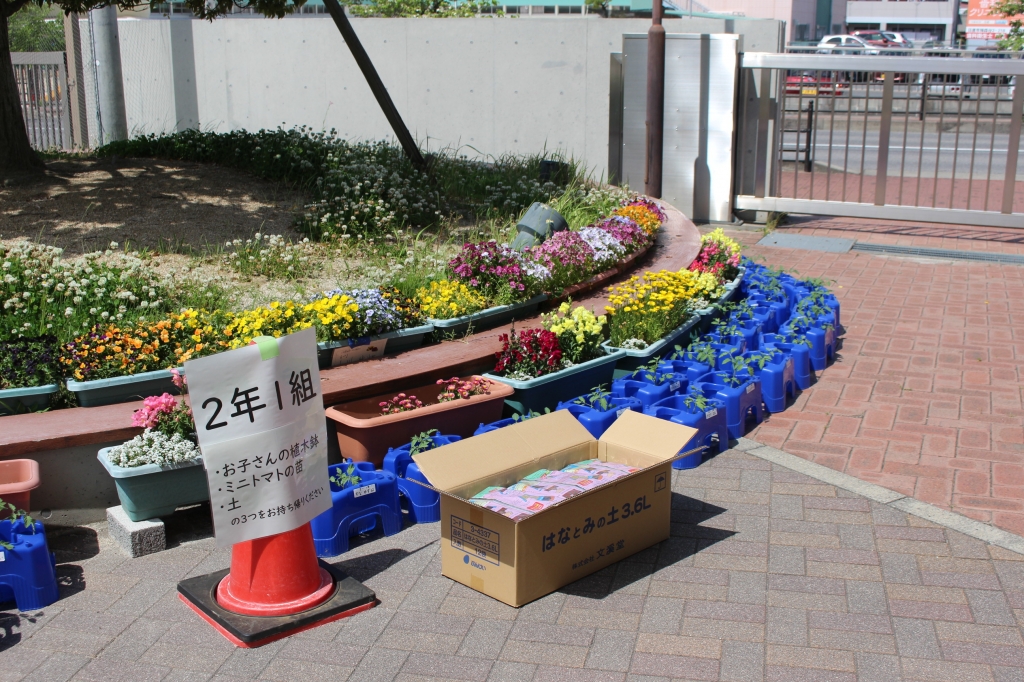 また、まとまった量の配付物となりますので、大きめの手提げなどをご用意ください。2年生の保護者の方は、最後にトマトの苗をお持ち帰りください。
