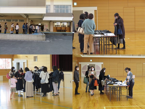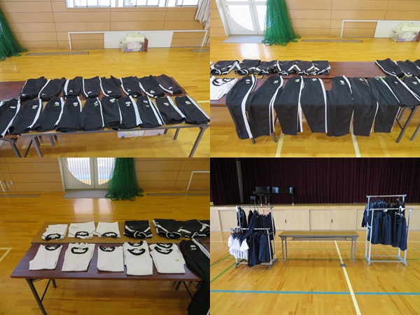 休日ではありますが、本日、体育館で地区委員のリサイクル担当11名の方が「制服リサイクル活動」を開催しました。