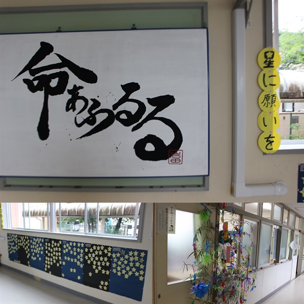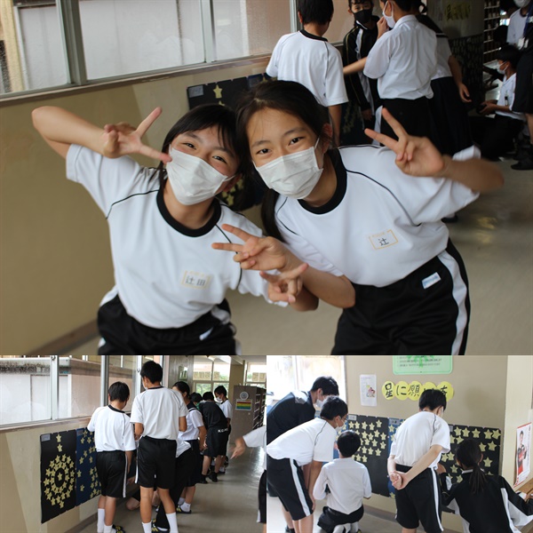 生徒会を中心に「星形の紙」に「願い」を書いて掲示しています。