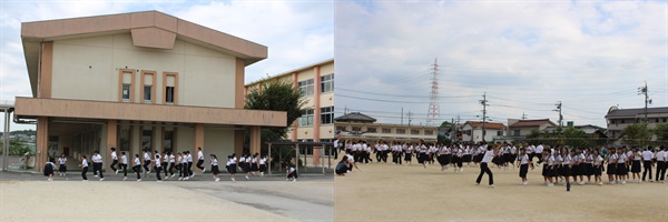 運動場で「大縄跳び」の練習をしているのは「12学級」です。