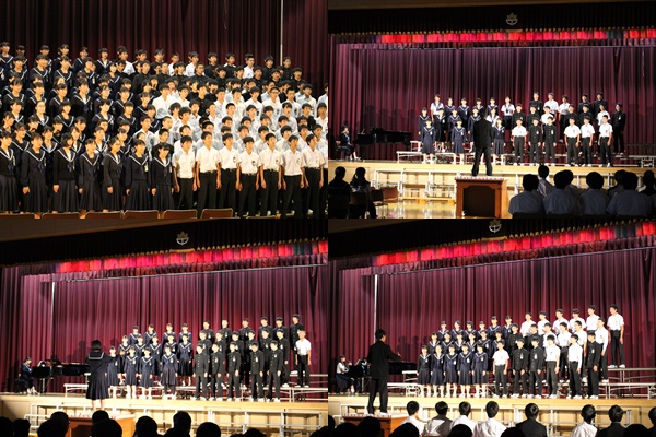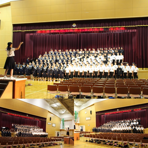 本日、初めて「各学級の歌」を聴き合いました。