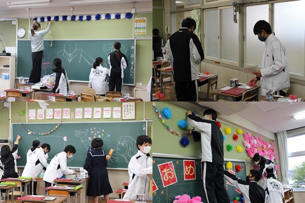 明日、3年生の子どもたちが登校したときに、昨年度、先輩たちにしてあげた