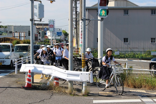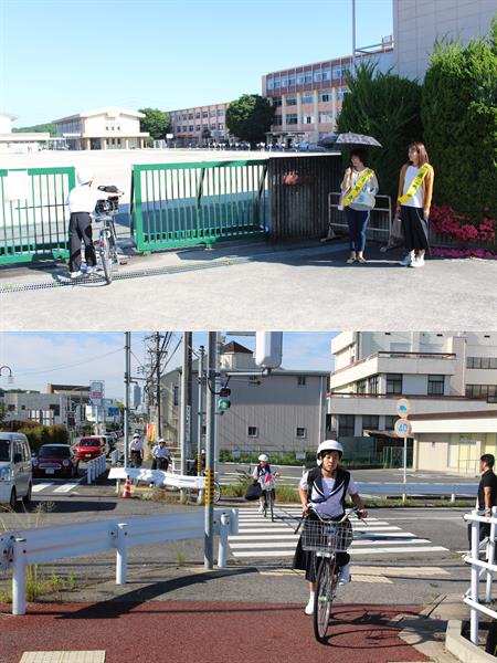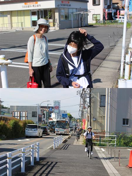けやき学級の千代ちゃんが、祖母と一緒に「安全」を確認しながら登校していました。
