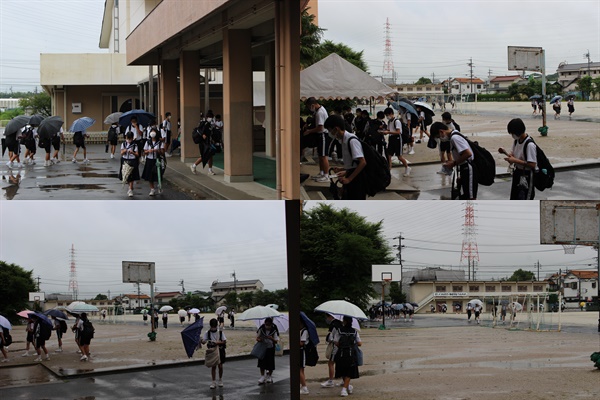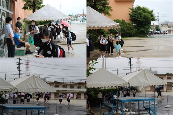 今日は、「久しぶりに」昇降口に立って「あいさつ」とともに、「検温」カード