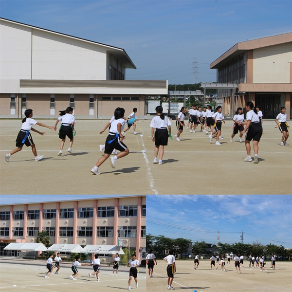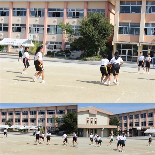 今日は、3年生女子が「楽しそうに」タグラグビーをしていましたが、