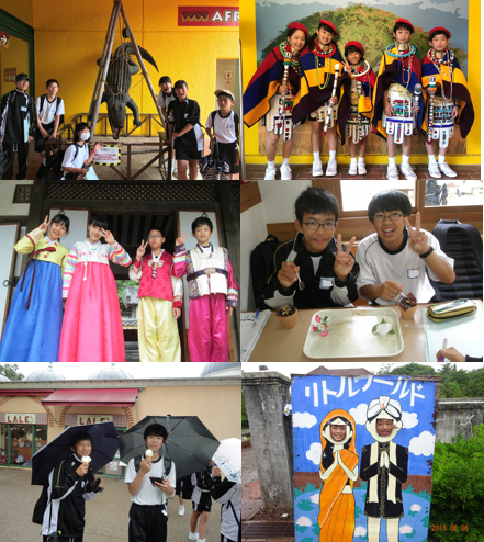1年生は社会見学で「リトルワールド」に行ってきました。あいにくの空模様でしたが、現地に到着すると日中生を歓迎するかのように雨は小降りになりました。班別行動では計画にしたがって様々な国の様子を見て回りました。