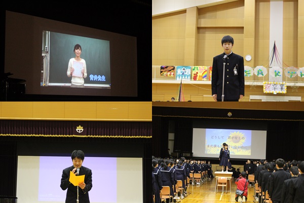 また、3年生が2年生の時に学年合唱で歌った「あなたへ~旅立ちに寄せるメッセージ」を