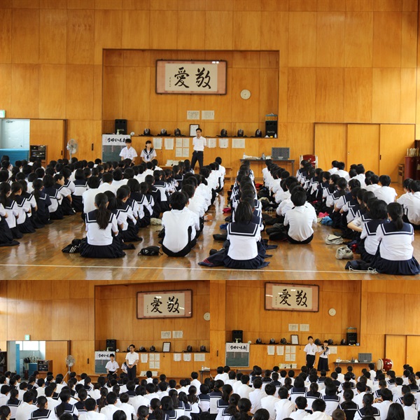 2年生が武道場で「学年集会」を行っていました。