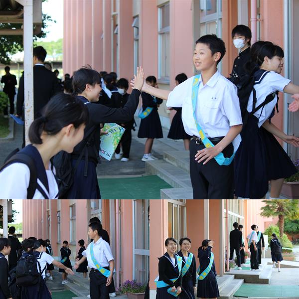 3年生が中心となって「朝のあいさつ運動」を行っています。