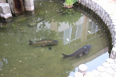 冬場は、2匹の鯉「ロミオとジュリエット」が、ゆっくりと泳ぐ程度でした。