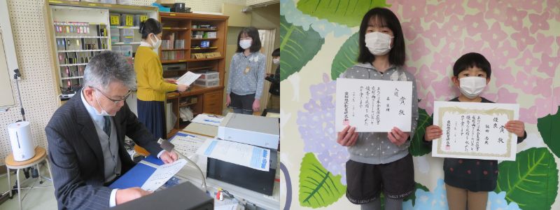 今朝、今年度最後の全校放送朝会を行いました。その中で、読書感想画コンクールの表彰を行いました。愛知地区(長久手市・日進市・東郷町・豊明市)優良1名、同入選11名です。校長講話概要は次の通りです。