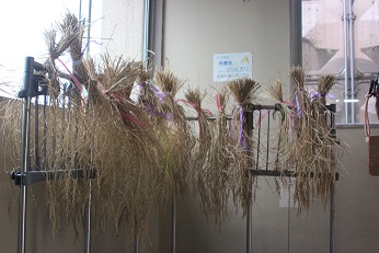 鎌で刈り取り、元をしばって干しました。(もうすでにパリパリですが。)