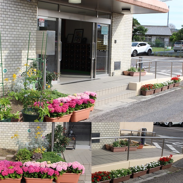 「けやき」学級の子どもたちが、来賓玄関付近の花壇をきれいに整えてくれています。