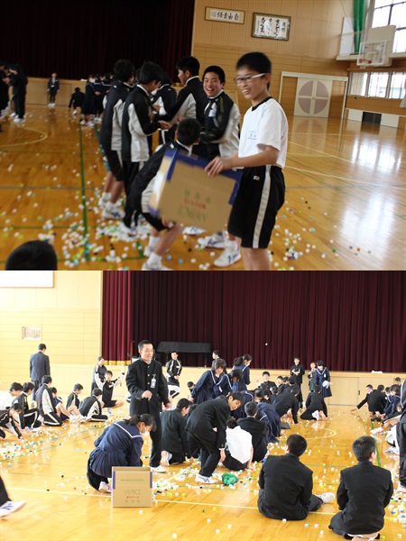 図書委員会、体育委員会が「3年生との名残を惜しむ企画」を昼放課に企画をしてくれました。運動場で遊ぶ子どもたち、図書室で真剣に探す子どもたち、体育館で必死に活動する子どもたち・・・・・・・・・。3年生を交えて「少しでも一緒に」と1・2年生が企画をしてくれました。惜しまれて、そんな企画をしてもらえる3年生たち。そんな関係をこれからも続けてくださいね!3年生は、その感謝の気持ちを「卒業式」の返事・歌で返してくださいね!がんばれ!!日中健児!!