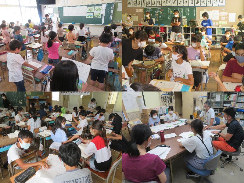本日は、2時限目に1年5組、3時限目に5年3組で国語の研究授業が行われました。授業者はそれぞれ、担任の安藤先生と八木先生です。どちらの学級も、担任と子どもたちの信頼関係が授業に表れていました。