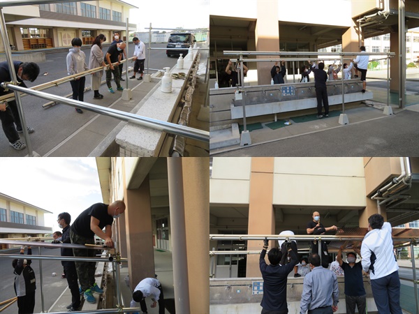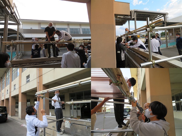 本校の技術を指導している教務主任が総監督となり、準備、指示をしてくれました。また、テストの採点があるにもかかわらず、協力してくださる本校の教員には大変感謝しています。それぞれ何ができるかすぐに行動して協力して行うことができたので、短い時間で仕上げることができました。波板が足りていないため残りの作業は後日になりましたが、職員の手作りとしては完成度がとても高いと思います。