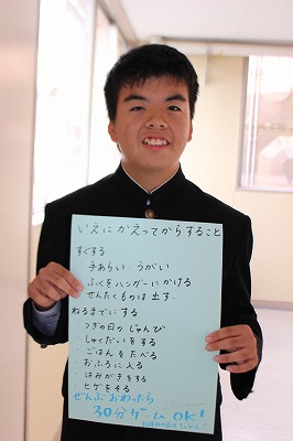 本日、「けやき」学級の裕治くんが「日頃の生活」について、