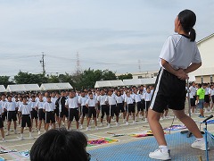 来週10日(木)の体育大会当日に向けて予行練習を行いました。開会式から競技の入退場、各団の応援、ギネスの練習を行いました。すべての流れを本番と同じように確認しながら進めましたが予定の時刻よりも早いペースで進んでいました。委員会の活動も天気の関係で十分に確認できていない中でも、生徒は自分たちで考えて行動するように努めていました。(さすが日中生です。)