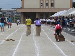 (左)障害物リレーの試走 (右)選手の応援練習(黄団)