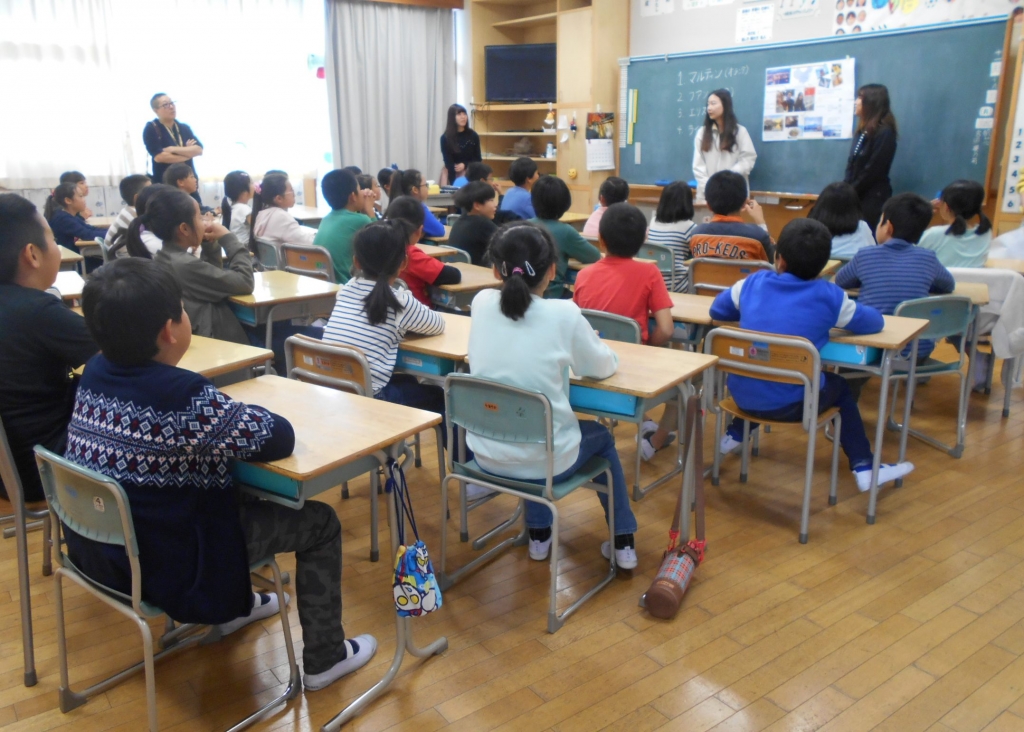 名古屋外国語大学から、留学生の方々が4年生と交流するために来校しました。