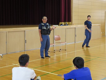 (消防署から2名の隊員に来てもらいました。)