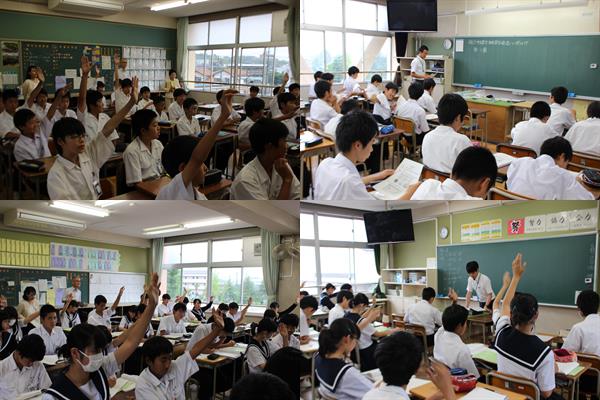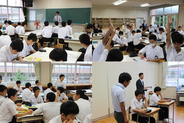 本日、日進中学校の「あらゆる様子」を見に「教育委員会の方々」が訪問をされました。