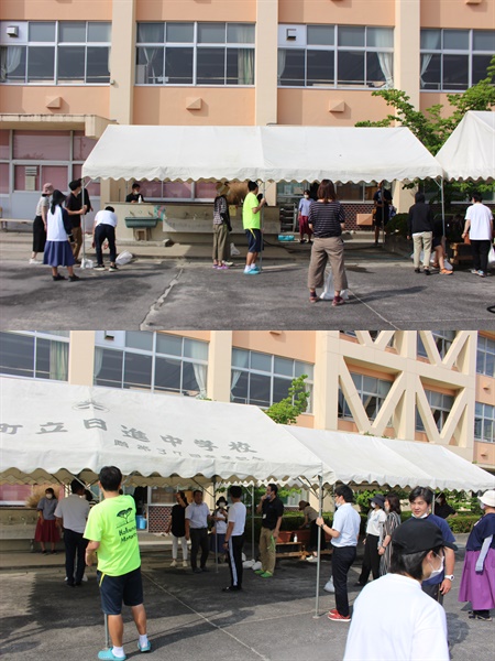 「声をかければ」気持ちよく作業に集まってくれる日進中学校教職員に感謝!
