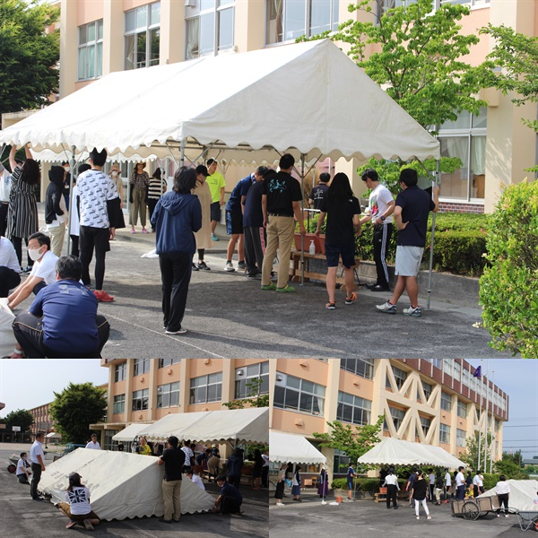 そこで、数少ない「テント」ですが、教職員全員で「手洗い場」付近に