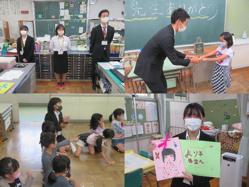 生懸命な姿勢に少なからず刺激を受け、実習生から学ぶことも多々ありました。 コロナ禍の中での教育実習ということで、通常より期間が短くなりましたが、その分、中身が濃くなったのではないかと思います。それぞれの学級では、心温まるお別れ会が開かれていました。この実習を通して、