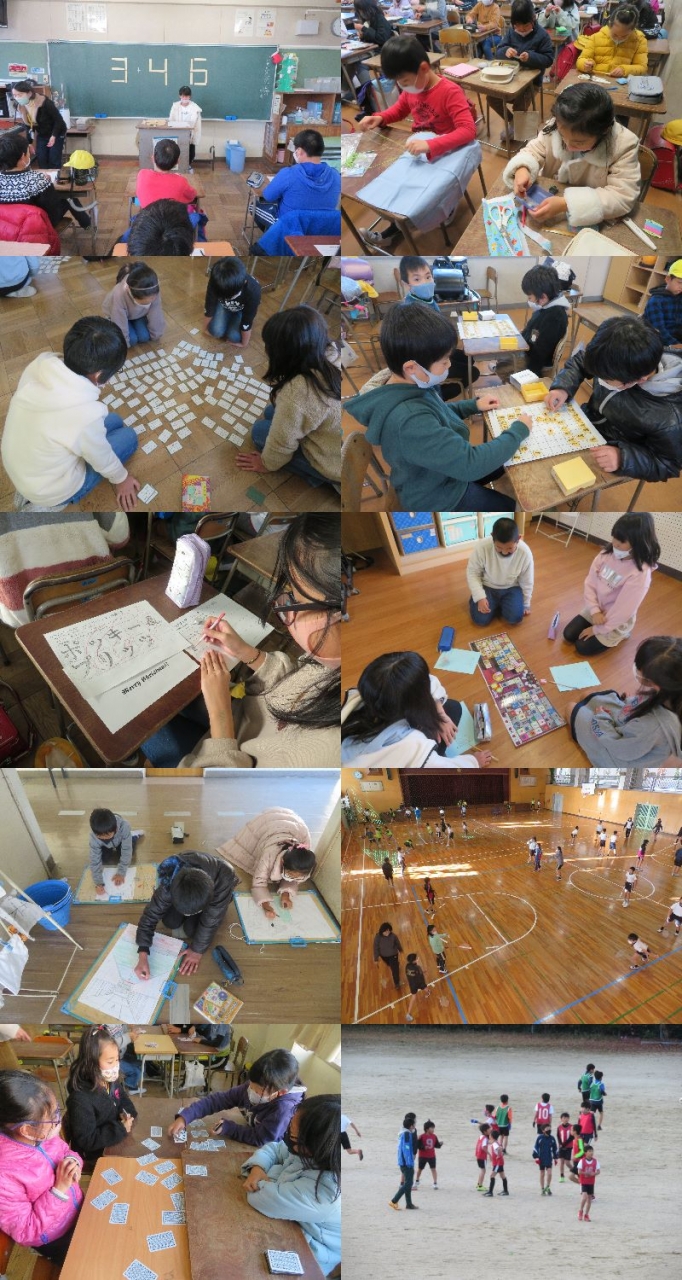 レタリング・よさこい・サッカー・バドミントン・ミニバス・アート書道・遊具遊び・頭の体操・手芸・将棋・トランプ・リコーダー・すごろく・読書・大人のぬりえ・百人一首・紙ひこうき・スケッチ・まんが絵本)あります。
