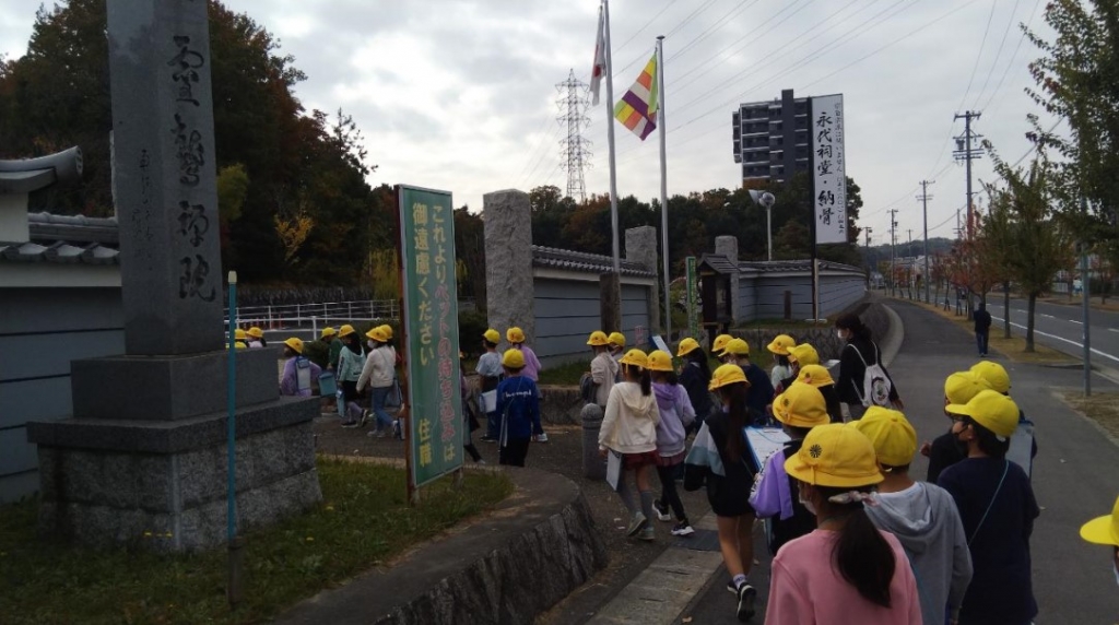 2の1と2の2が2時限目にまちたんけんで皆が山寺と呼んでます、霊鷲院(りょうじゅいん)に出かけました。山門を抜け、参道を歩き厳かな雰囲気を味わいながら、本堂へ入れていただきました。そして、住職さんから貴重なお話をしていただきました。霊鷲院の由来は、岐阜県恵那市にある岩村城主の奥方だそうです。詳しくは、子供たちに聞いてください。