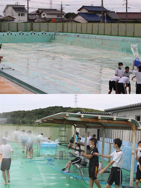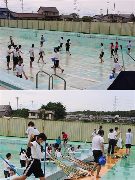 本日、2年生が「学年行事」で、「プール清掃」を行いました。